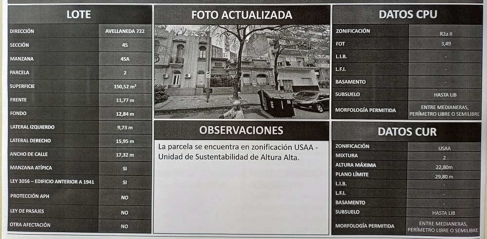 Terreno en Caballito, sup 150,52 Frente 11,77 Fondo 12,84 Lat Izq 9,73 Lat Der 15,95
